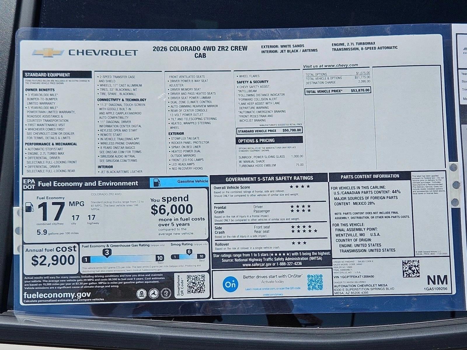 - ZR2 Preferred Equipment Group includes standard equipment